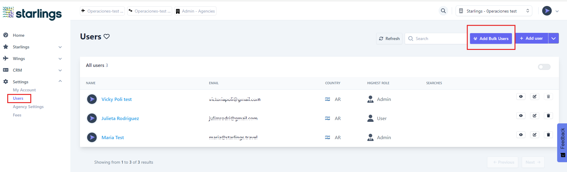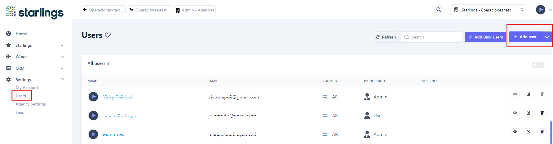 A- If your role is Consolidator Administrator, you can create users for both the consolidator and the agencies. Once in the administration panel, you can access the Users section through User & Auth > Users.