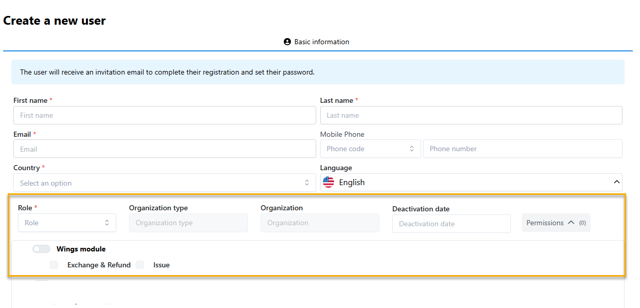 New User: allows you to view the list of invitations sent to create users from scratch.