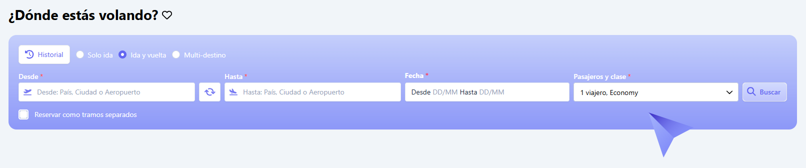 Para comenzar con una búsqueda, veamos primero los principales elementos del buscador de vuelos.