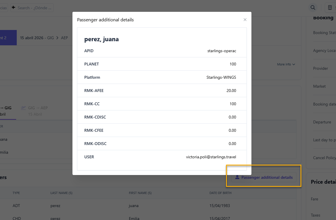 Detalles adicionales de pasajeros: información ampliada de cada pasajero.