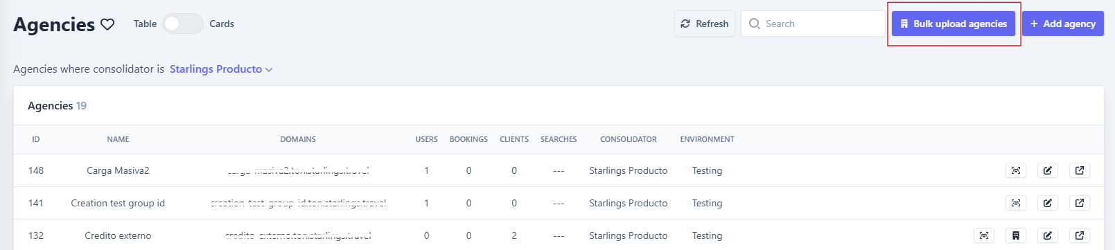Ingresar al Panel de Consolidador > Agencias.