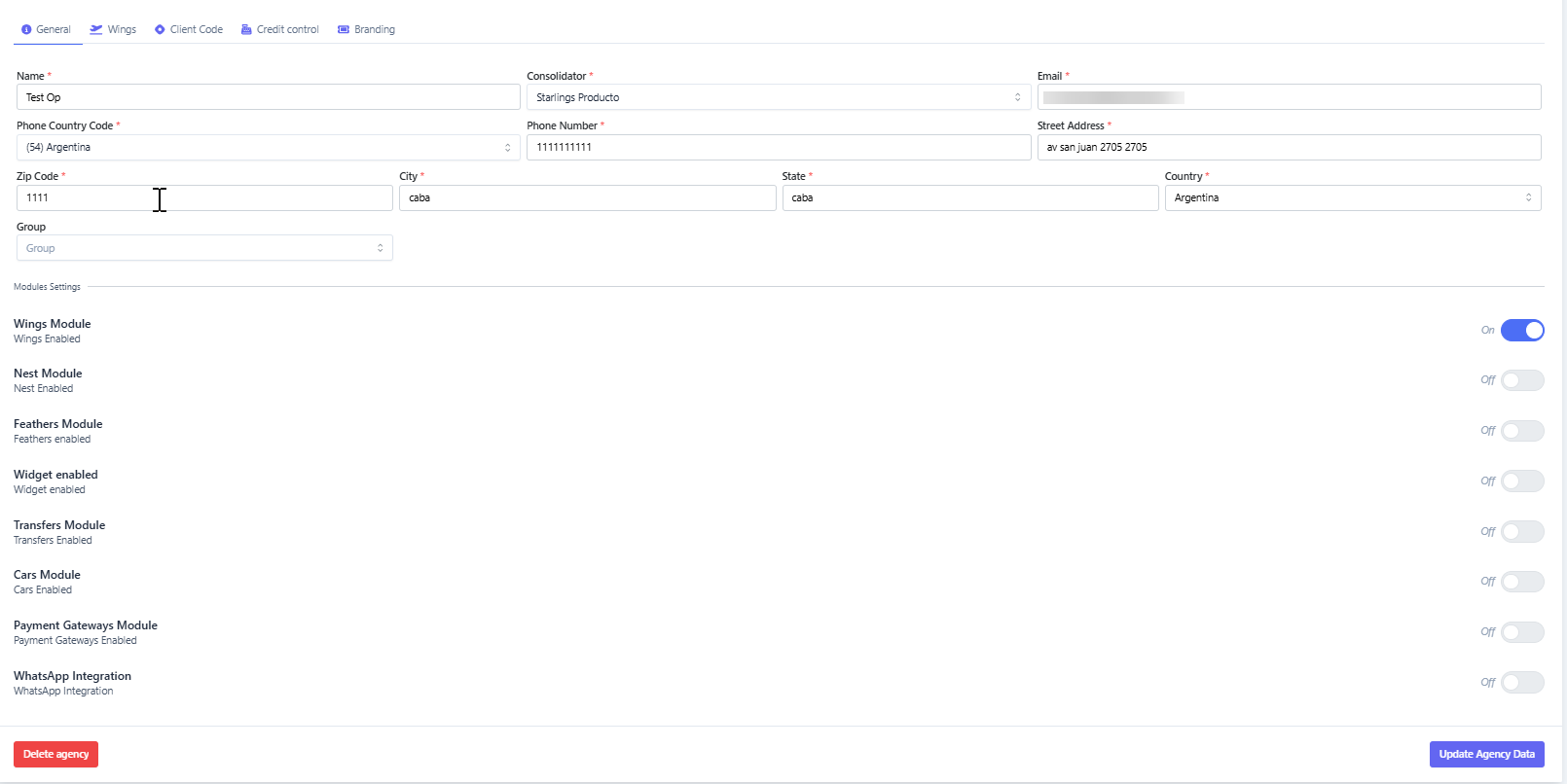 ➡️ Una vez completados los datos, hacer clic en “Update agency data”.