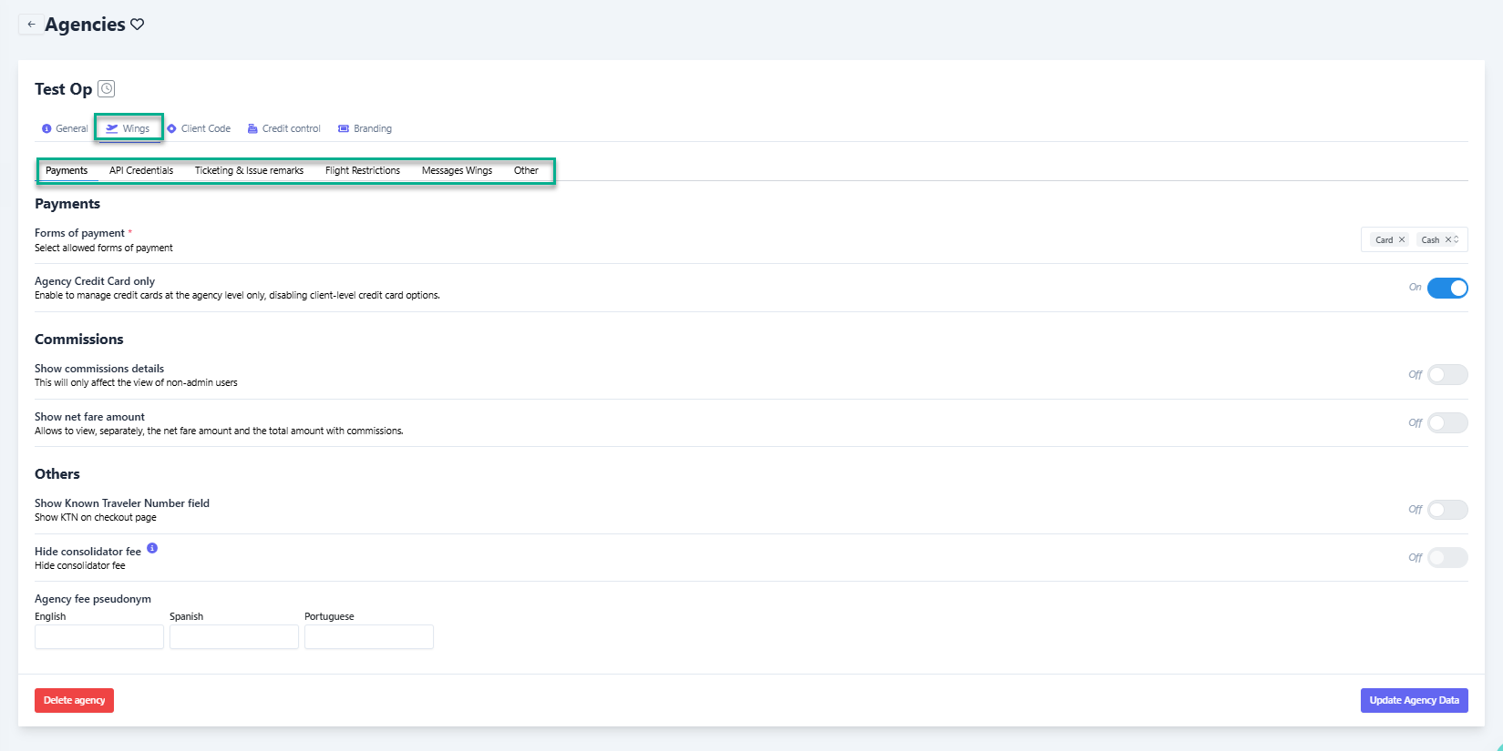 Para crear una nueva, hacer clic en “+ Add agency” (ubicado en la esquina superior derecha de la pantalla).