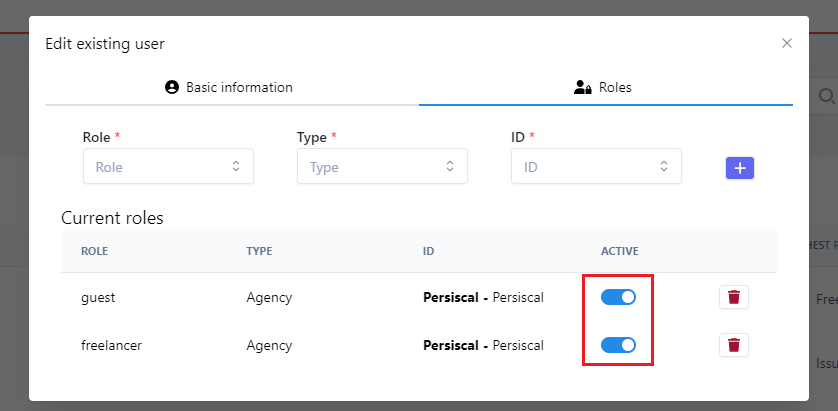 En el caso de querer limitar el acceso a la agencia, el consolidador, podrá desactivar ó eliminar el rol asignado dentro de la edición del usuario.