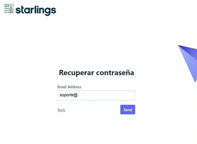 Se le solicitará un email para el envio de link de recuperación.
