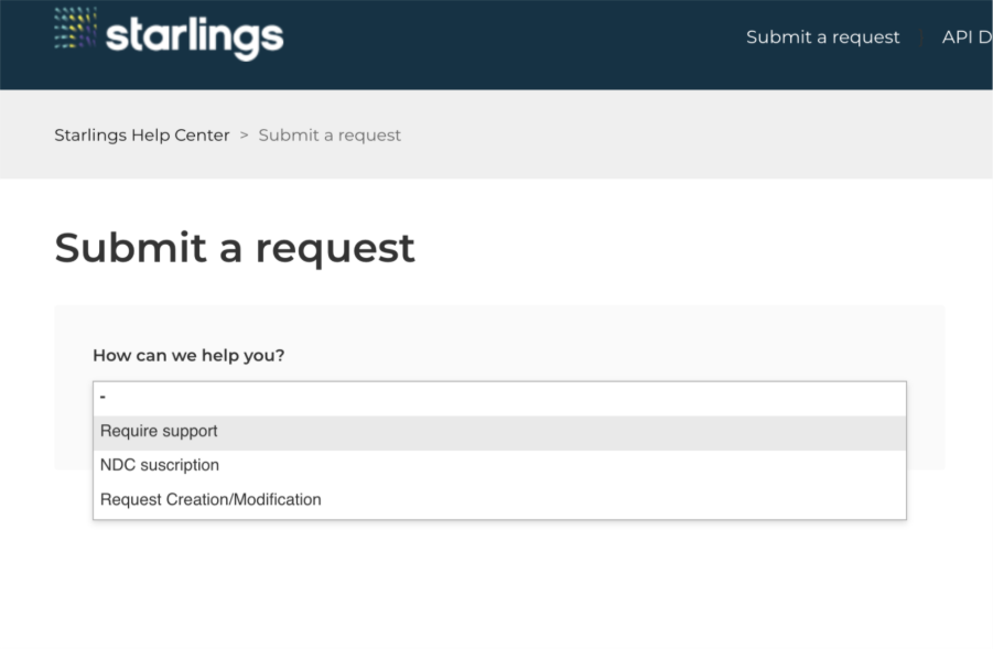 Hacer clic en "Submit a request" (en la esquina superior derecha).