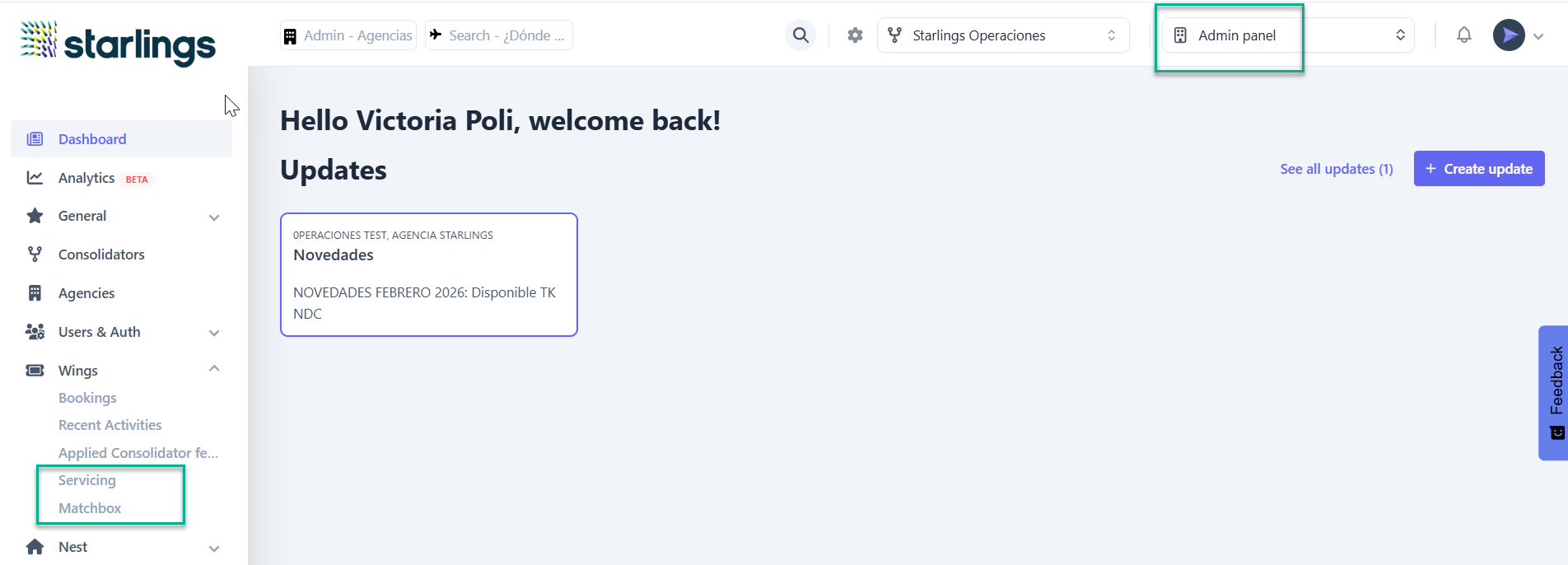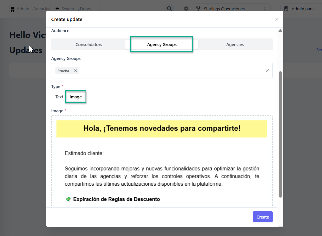 Hemos mejorado el centro de novedades (Updates) de Starlings, incorporando nuevas funcionalidades que permiten optimizar la comunicación con las agencias.