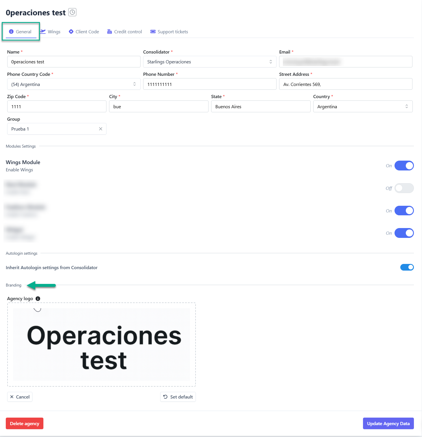 La configuración de Branding ahora se encuentra incluida dentro del módulo General al momento de crear o editar una Agencia o Compañía.