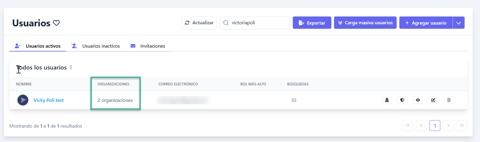 - Columna “Organización” en el listado de usuarios