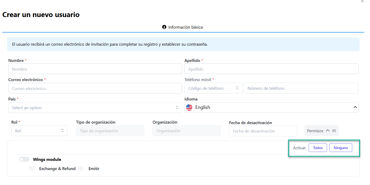 Todos: activa automáticamente todos los módulos y permisos.