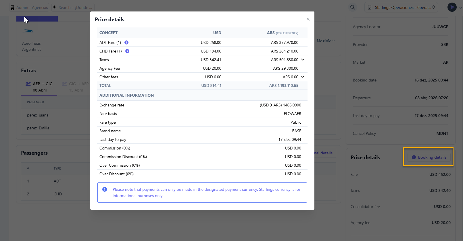 Detalhes adicionais dos passageiros: informações ampliadas de cada passageiro.