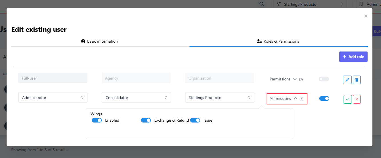 Todas as funções podem ser atribuídas no nível do consolidador ou da agência (exceto usuário básico, que se aplica somente ao nível da agência).